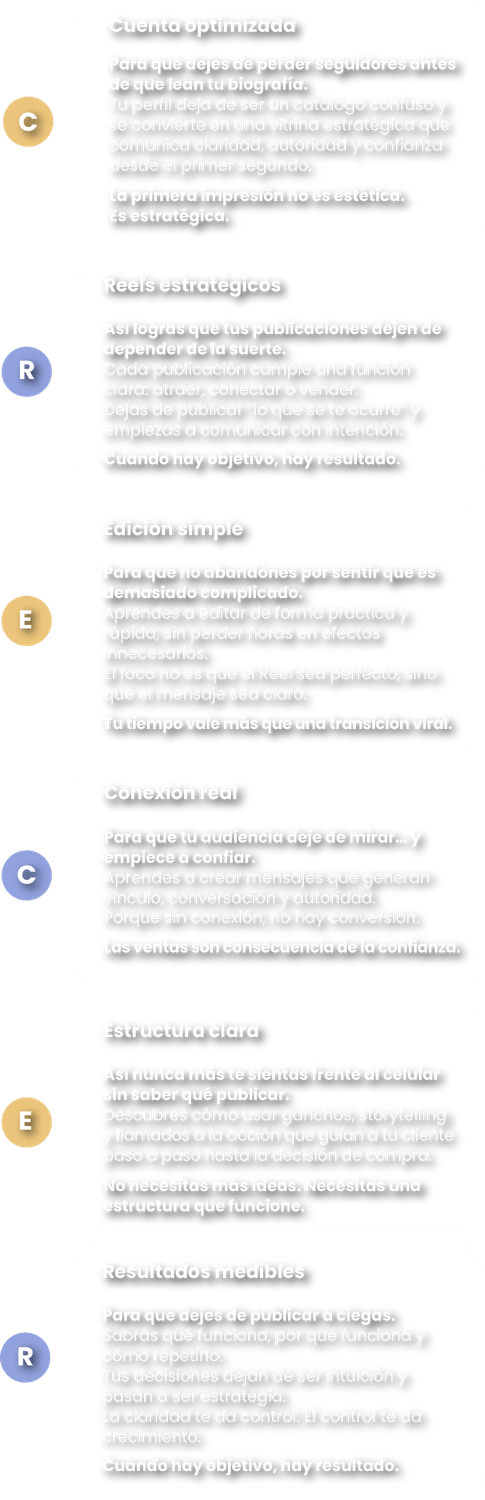 Antes de este módulo: Creabas reels sin el método ERV (estrategia reel viral) que hacía más largo el camino para lograrlo.